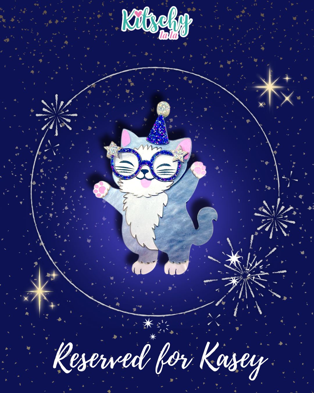 1x silver/grey new years kitty brooch
